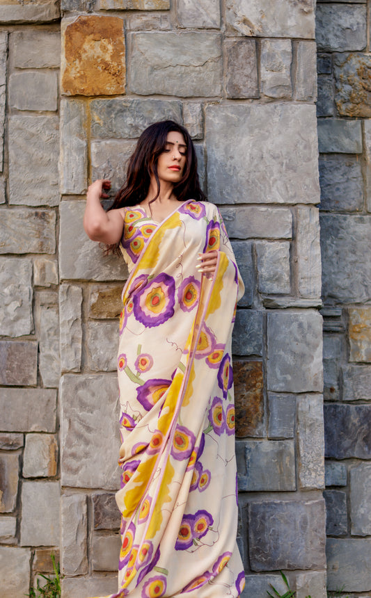 Māya– Handpainted Color Block Pen Kalamkari Saree in Pure Chanderi Pattu Silk